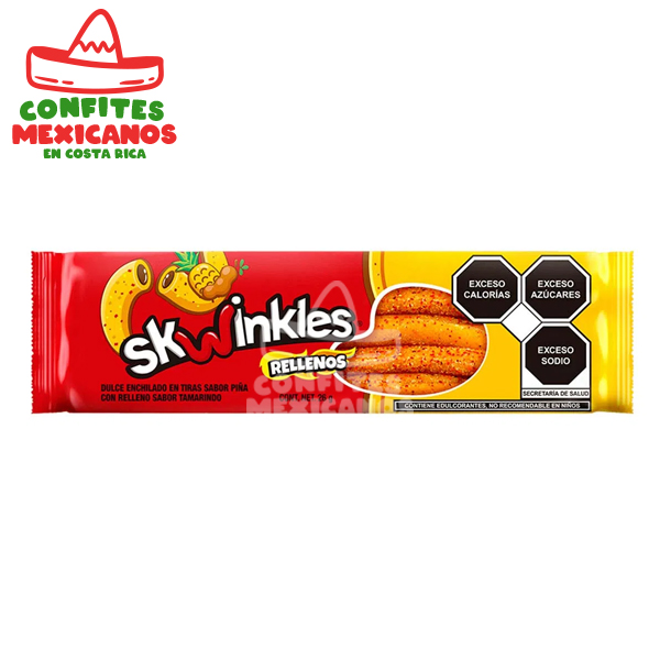 Dulce enchilado Skwinkles en tiras sabor piña con relleno sabor tamarindo